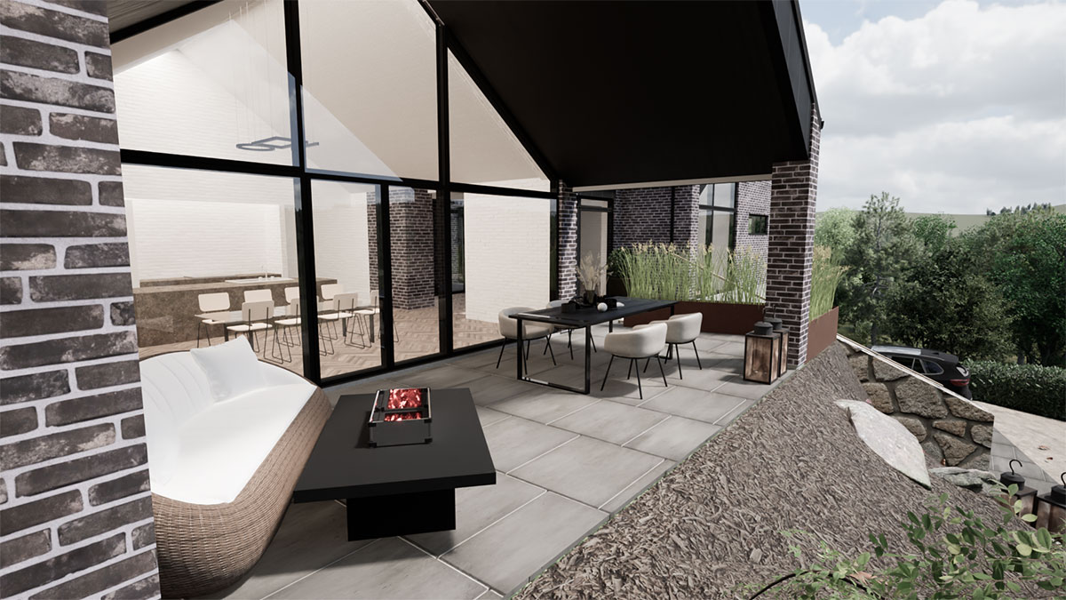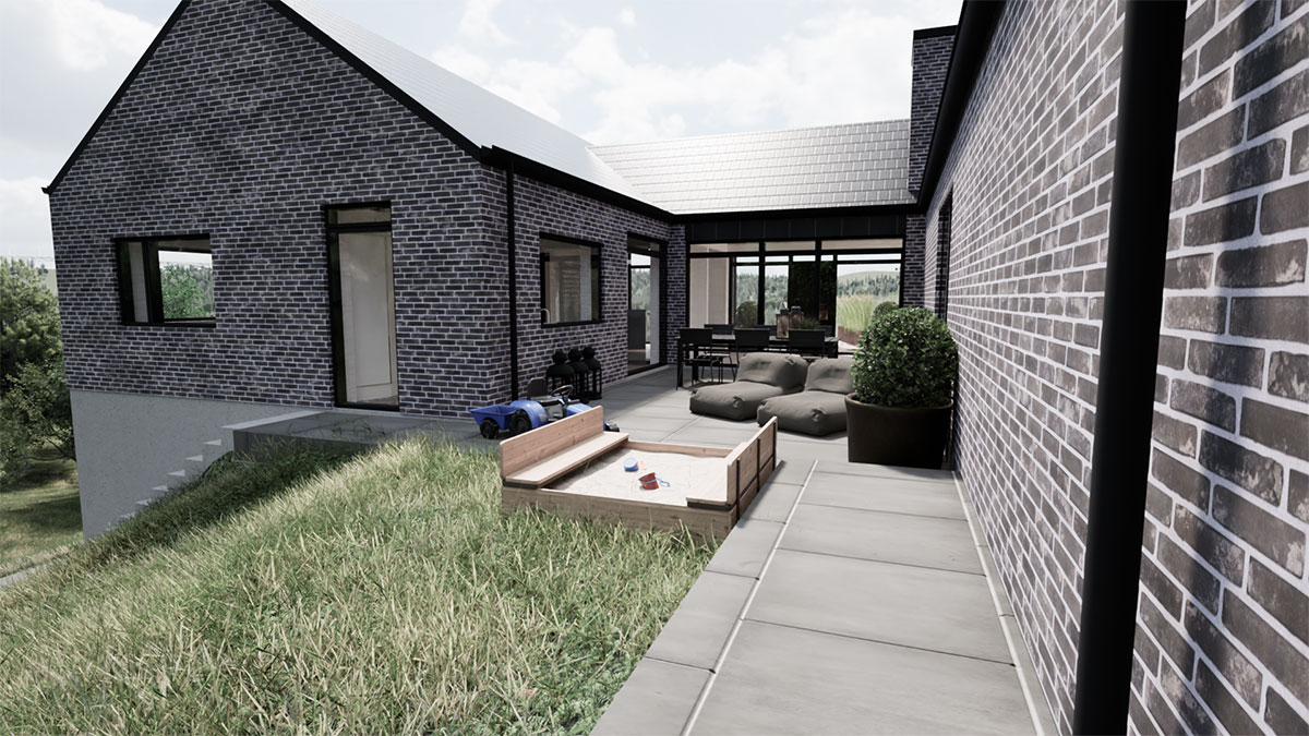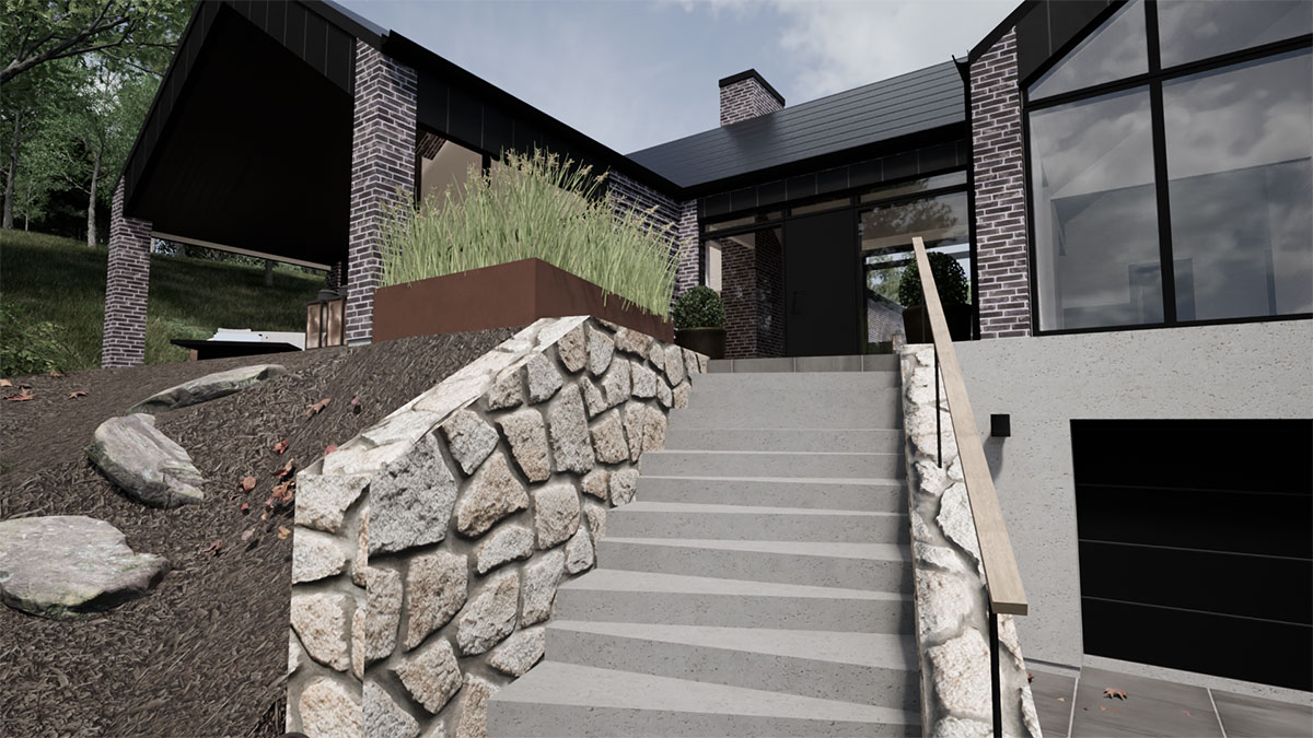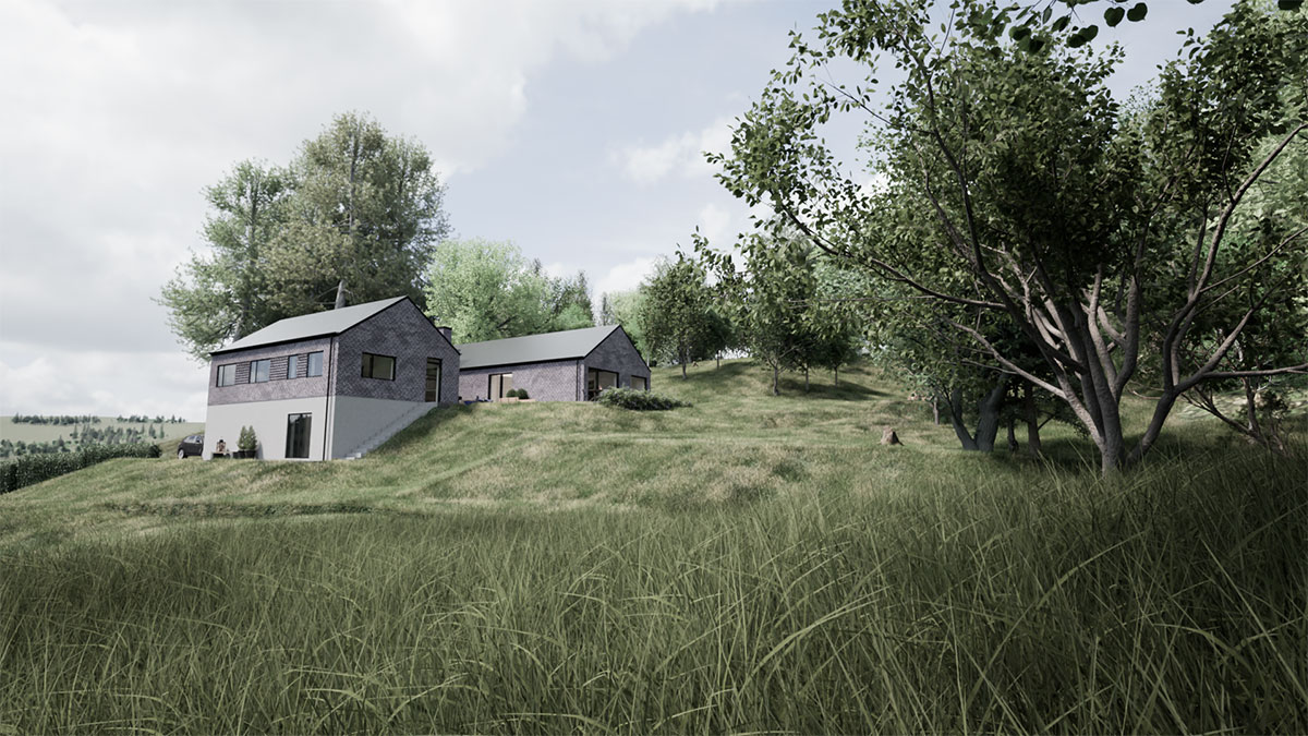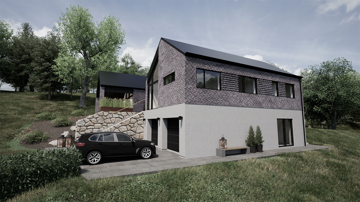 Arkitekttegnet villa i de skønneste naturomgivelser. Huset er lavet på en skråning, hvilket stiller ekstra krav til ingeniørens tværfaglige ekspertise.